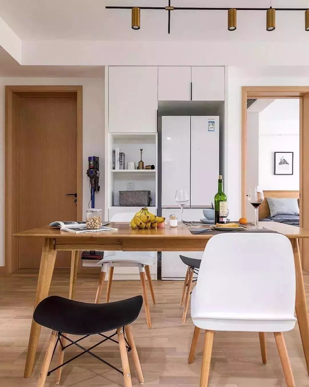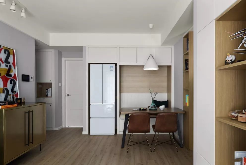 把冰箱给嵌入餐边柜当中,小户型做个这样