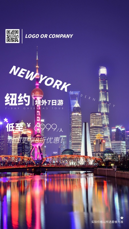 旅游出行现代城市纽约旅行宣传促销手机海报