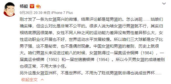 杨毅:姑娘们很棒 但拿女篮和男篮对比不公平