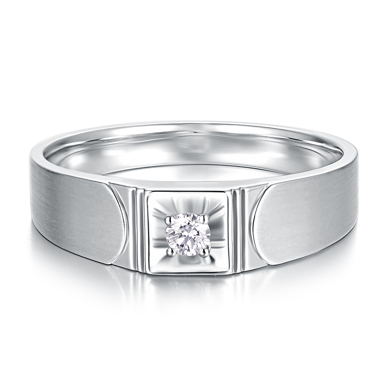 珂兰18K3D硬金钻石戒指男士大气单钻钻戒