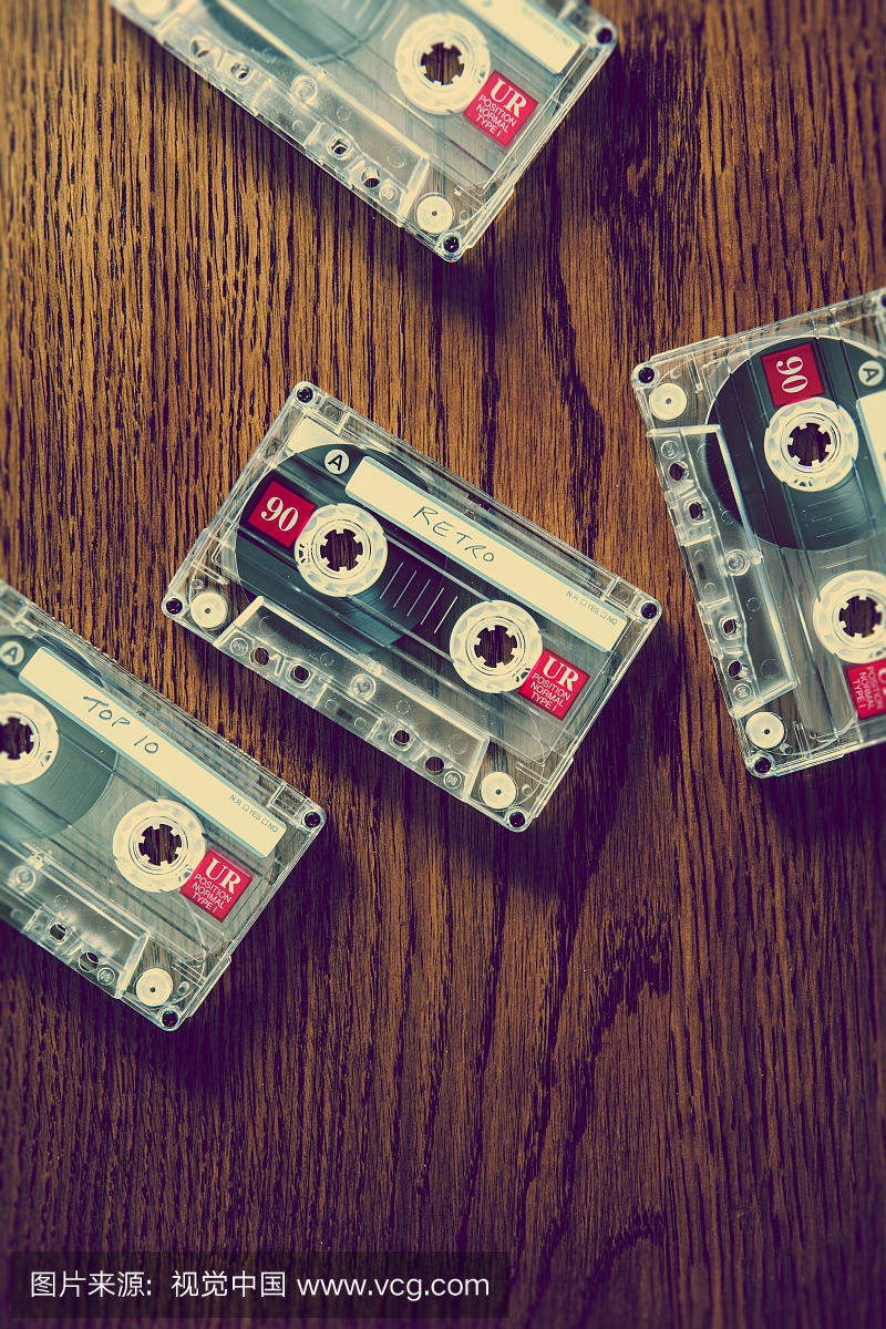 从 90 年代的复古音频盒式磁带,录音机,音乐播放器,录像