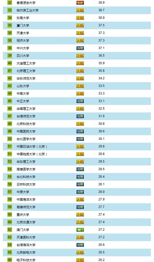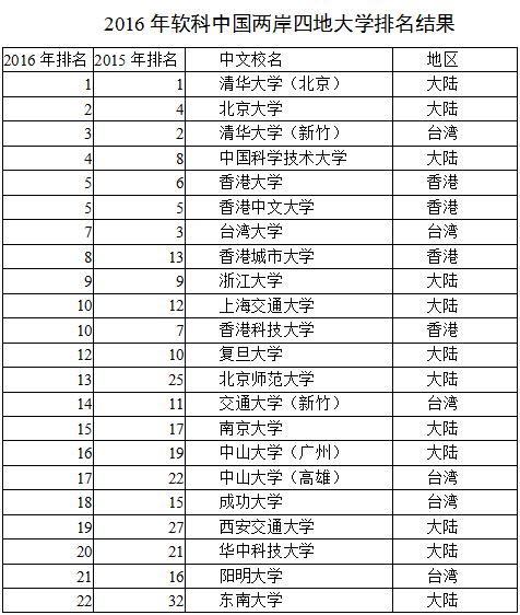 中国两岸四地大学排名百强榜 大陆64所(图文)