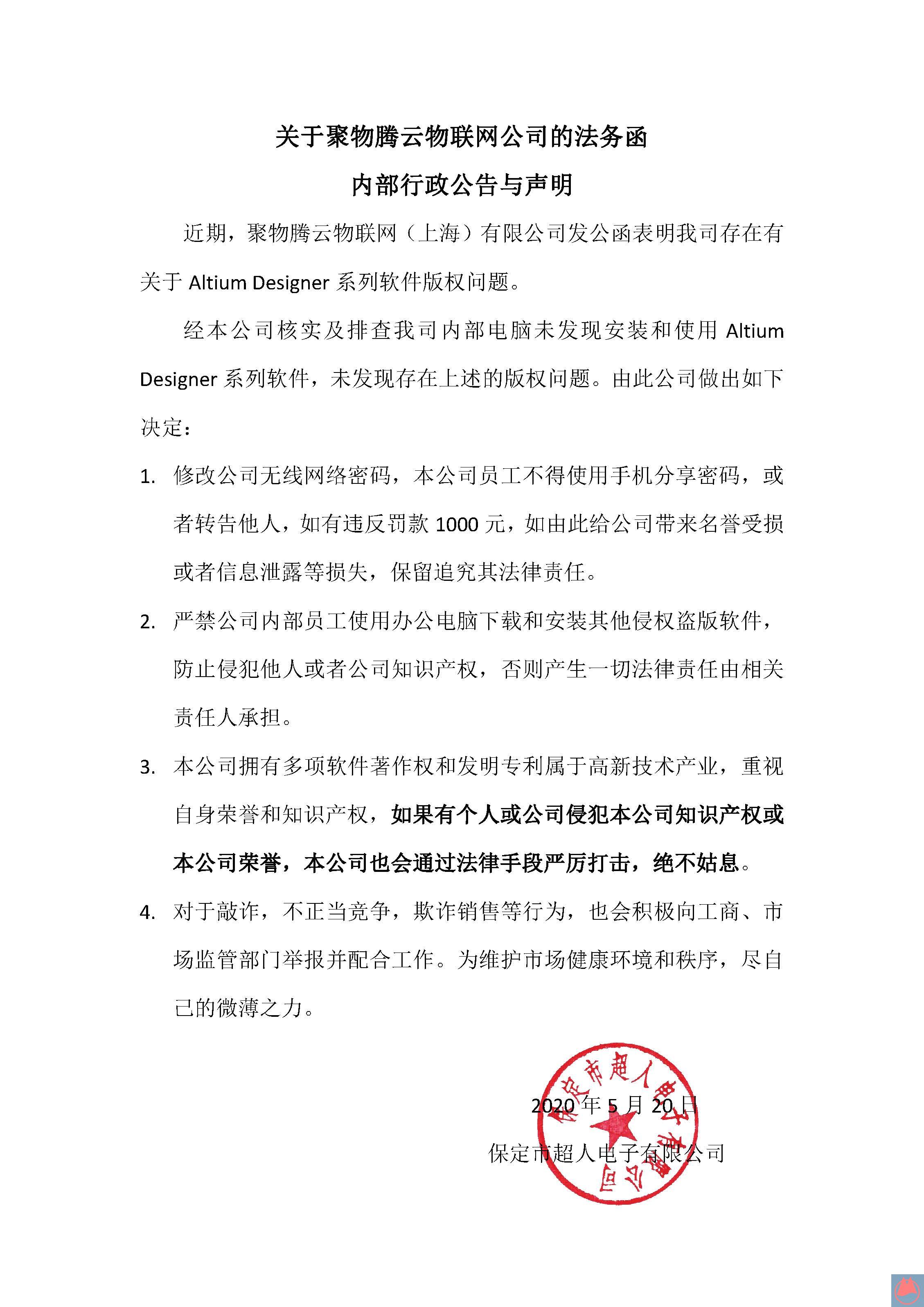 关于聚物腾云物联网公司的法务函的公告与