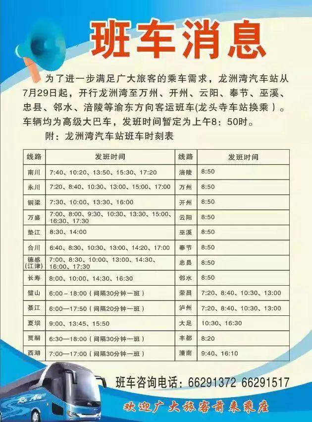 万州、开州、涪陵…龙洲湾汽车站今天起