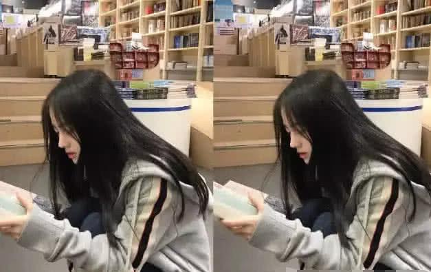 路人图书馆偶遇鞠婧祎,蹲下看书像个学生,