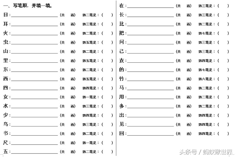 一年级上册语文专项练习:偏旁笔顺+加一笔