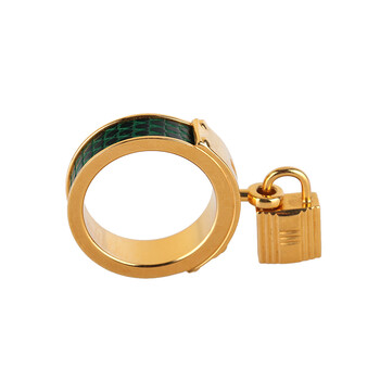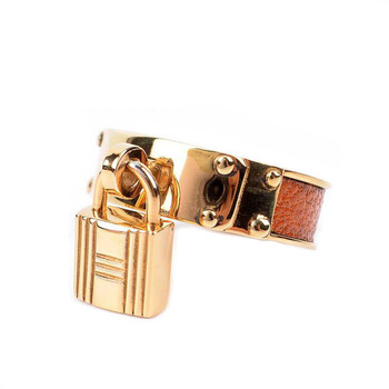 HERMES 爱马仕红色皮质金色挂锁丝巾扣-