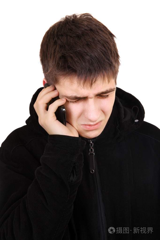 悲哀的年轻人用手机