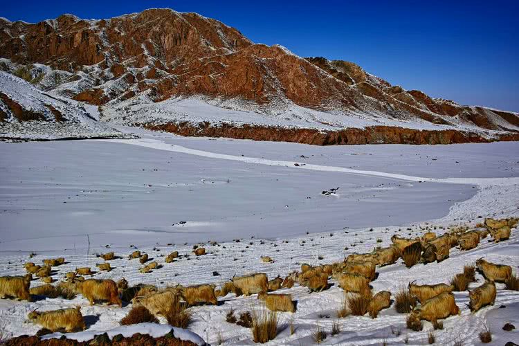 千里冰清霜洁,万里黄沙戈壁,塞北风光似