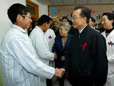 温家宝总理与艾滋病人紧握手:南方新闻网