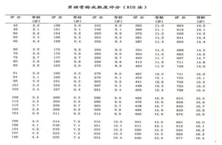骨龄与身高对照表2017