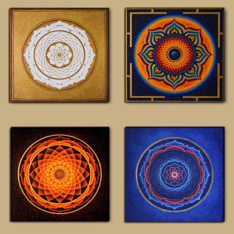 唐卡西藏手绘挂画莲花眼图案曼陀罗瑜伽房装