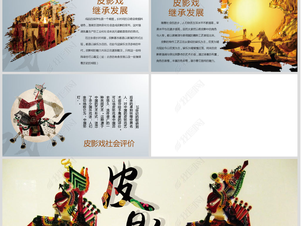 简介:皮影戏是让观众通过白色布幕,观看一种平面偶人表演的灯影来达到艺术效果的戏剧形式;而皮影戏中的平面偶