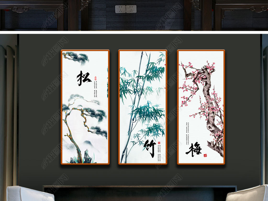 岁寒三友源文件_梅花_风景_PSD分层素材