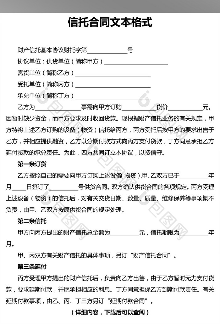 信托合同文本格式word文档模板免费下载_