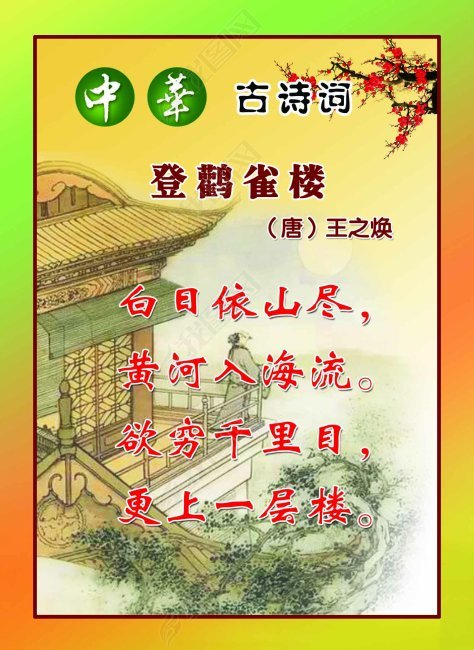 简介:《登鹳雀楼》是唐代诗人王之涣创作的一首诗。此诗前两句写的是自然景色,但开笔就有缩万里于咫尺,使咫尺