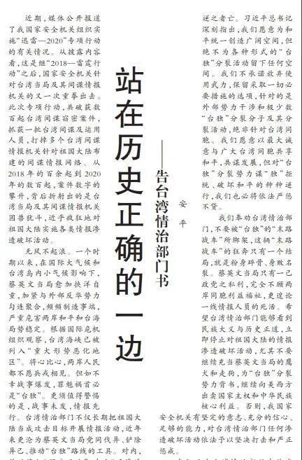 如何理解媒体发文《告台湾情治部门书》:勿谓言之不预也?