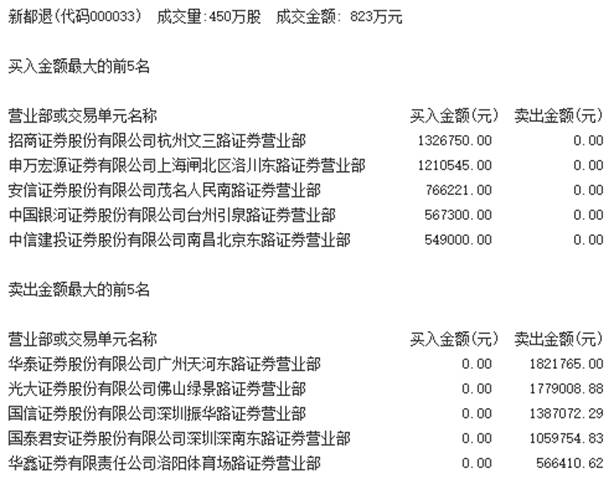 一营业部火中取粟 逾2000万元买入新都退