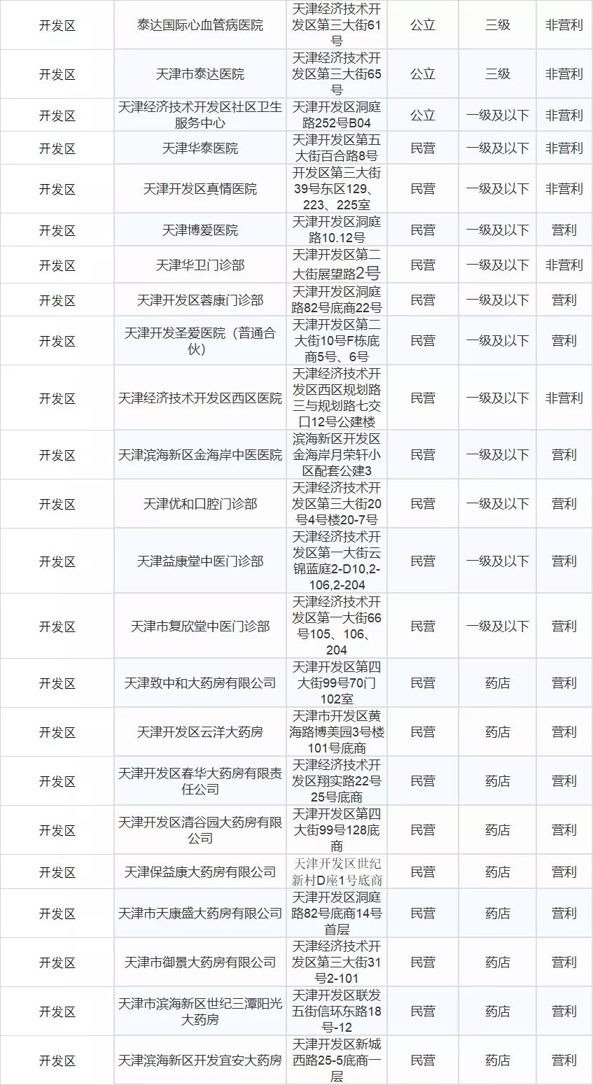 滨海泰达最新最全医保定点医院、药店名单