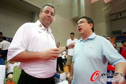 上海男篮俱乐部总经理章明基(左)与张兆旭