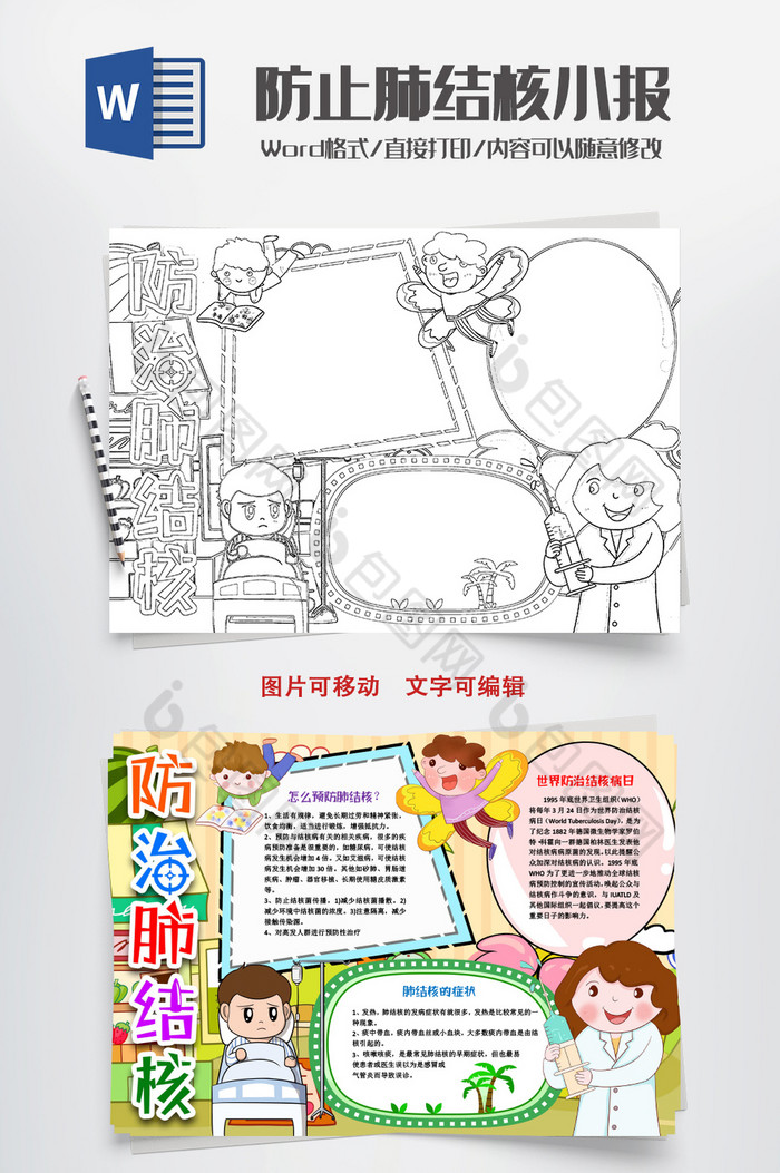 预防防治肺结核传染病手抄报word模版