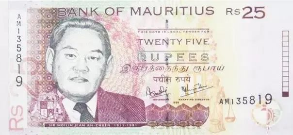 全新毛里求斯25卢比(华商主席朱梅麟版)