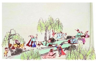杨柳送别国画