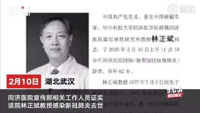 武汉同济医院林正斌医生感染新冠肺炎去世