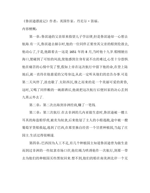 《鲁滨逊漂流记》第一章 精彩内容 概括 和