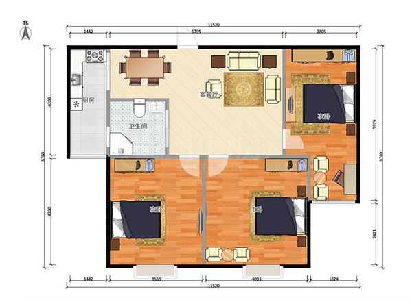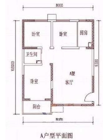 带大阳台三房两厅一卫户型图_设计456装修效果图