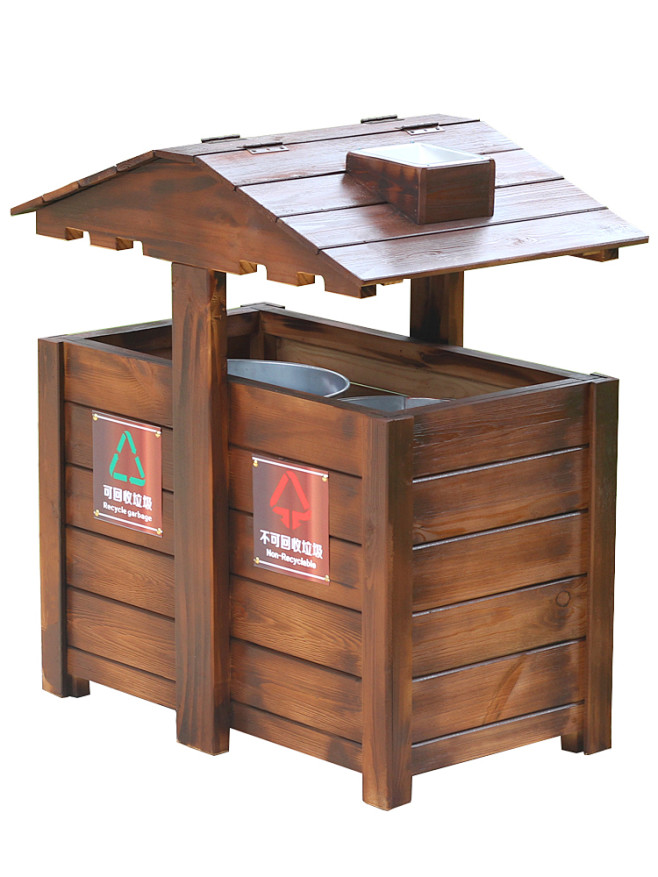 户外防腐木垃圾桶公园木质果皮箱园林景区