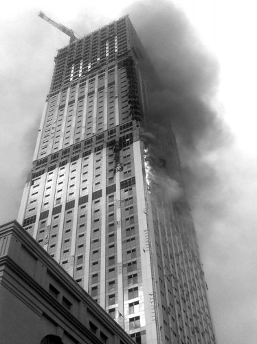 组图:现场实拍江苏南通第一高楼火灾-南通