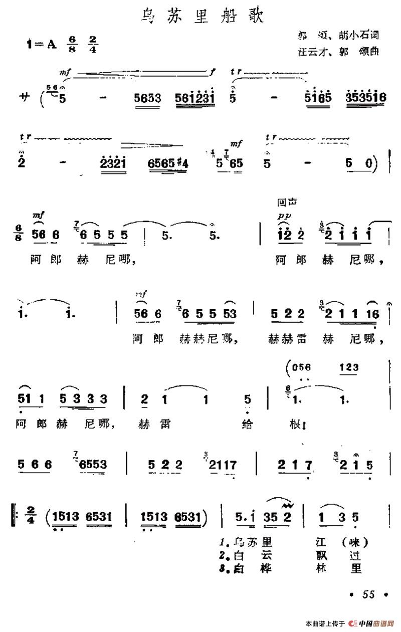 乌苏里船歌f调简谱