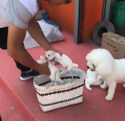 主人拿小狗狗出去卖,狗妈妈的举动十分