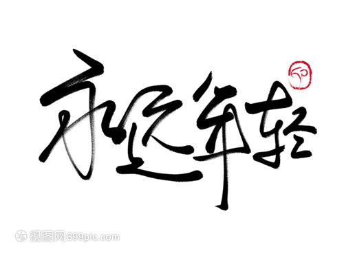 永远年轻手绘笔刷笔刻字孤立在白色背景上。节日贺卡和邀请的婚礼、 情人节、 母亲节快乐、 生日、 周年设计