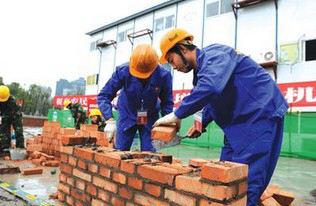 选手现场砌砖盖房