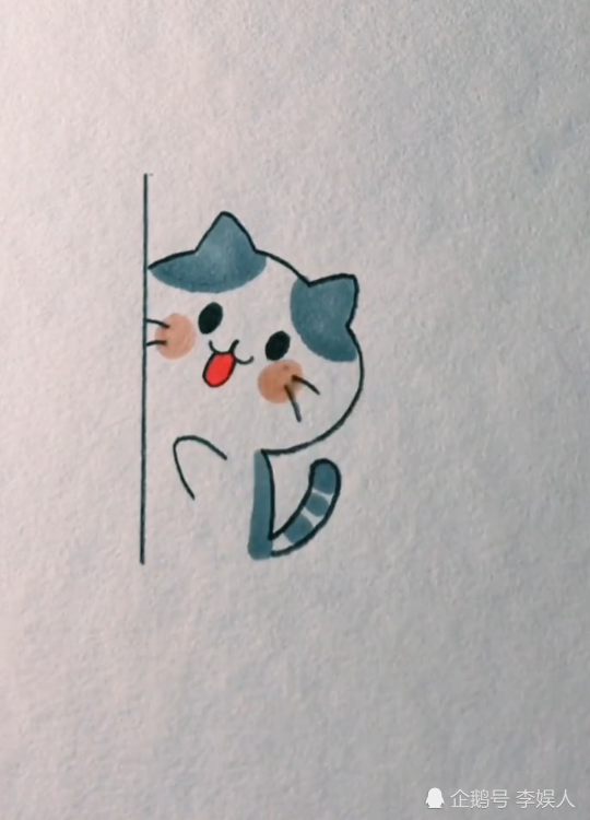 美术生简笔画喵星人,躲猫猫的动作超可爱,