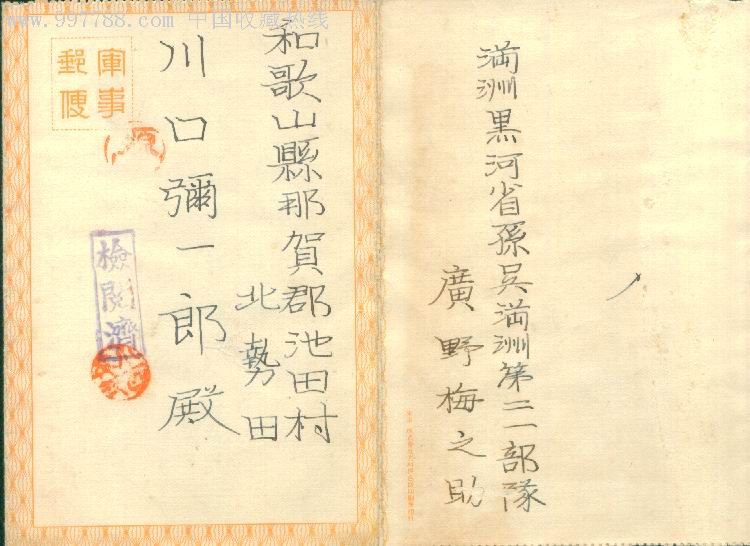 1930年代日本侵华*事邮便满洲黑河省实寄