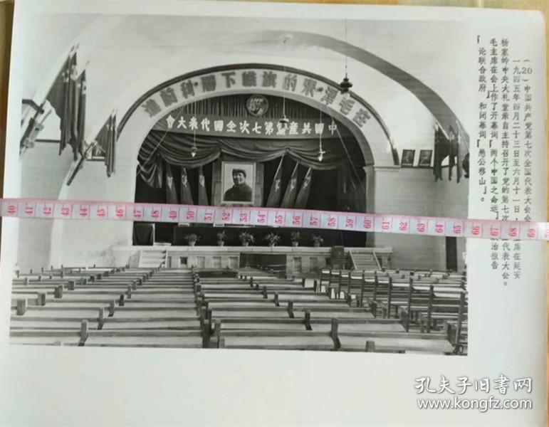 老照片:中国共产党第七次全国代表大会会址——延安杨家岭中央大礼堂。_孔