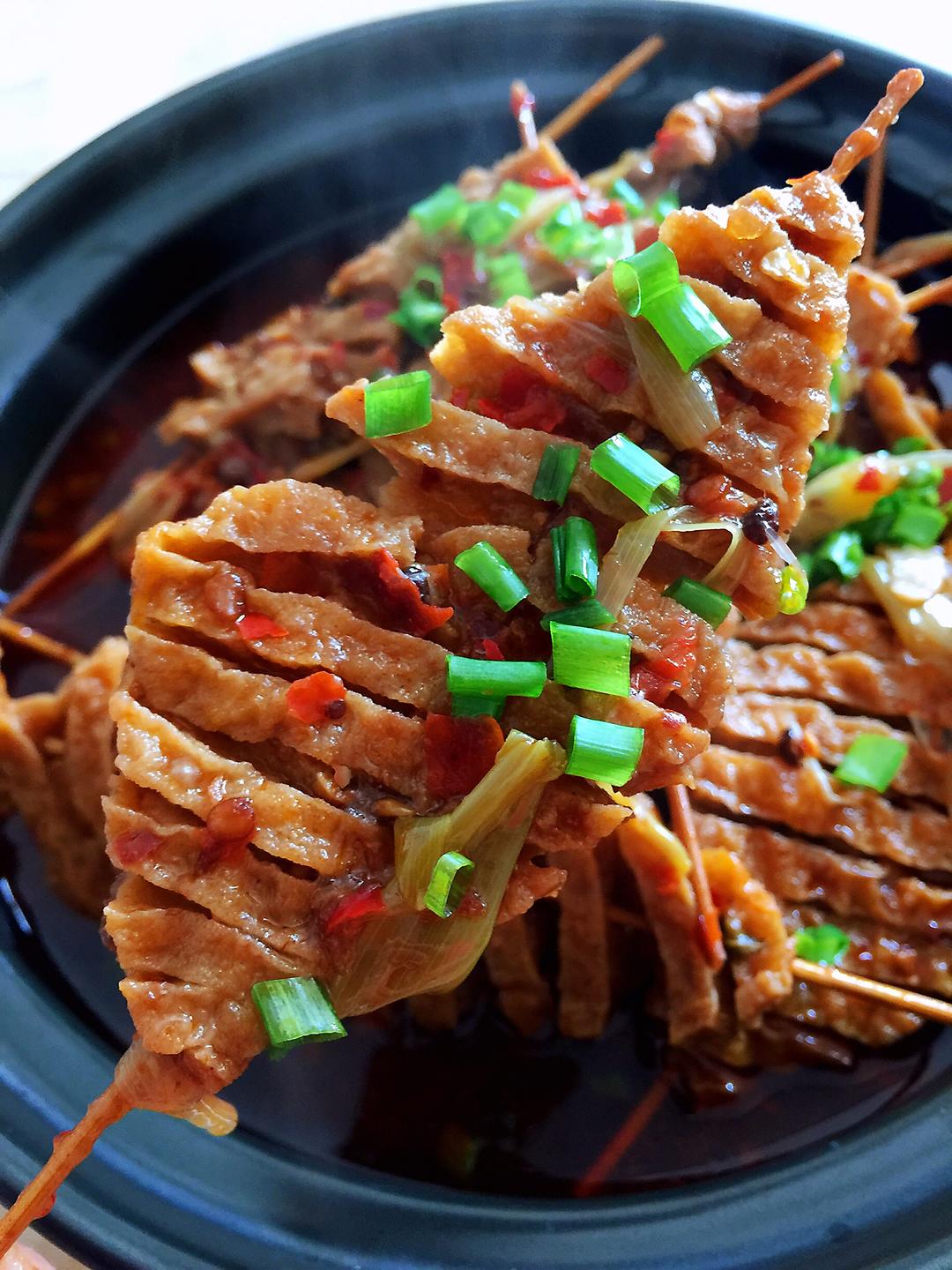 简介:豆腐串是一道美味可口的小吃。基本做法是将豆腐泡放入高汤中,煮透后捞出;将香菜、蒜、葱均洗净,切成末,