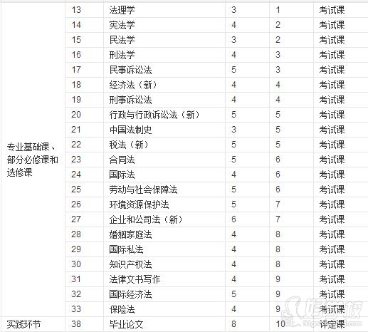 法学专业课程安排