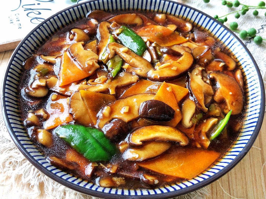 青椒素炒香菇摄影图_美食_传统美食_餐饮