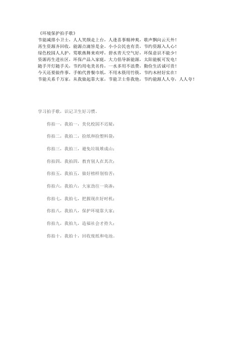 幼儿园小班语言儿歌课件:保护环境拍手歌