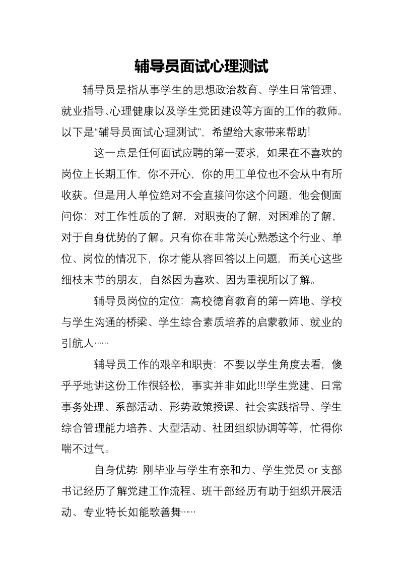 辅导员面试心理测试
