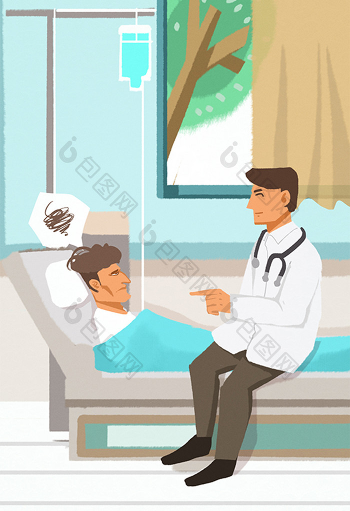 卡通民生医疗医生病人住院痛苦输液健康插画】图片下载-包图网
