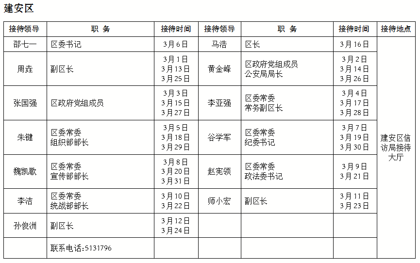 县(市、区)县级党政领导信访接待日程安排
