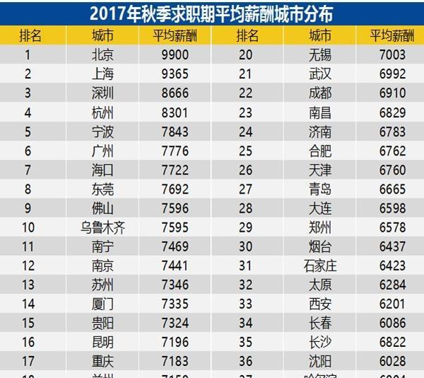 22019年秋季各城市平均工资新鲜出炉,你拖