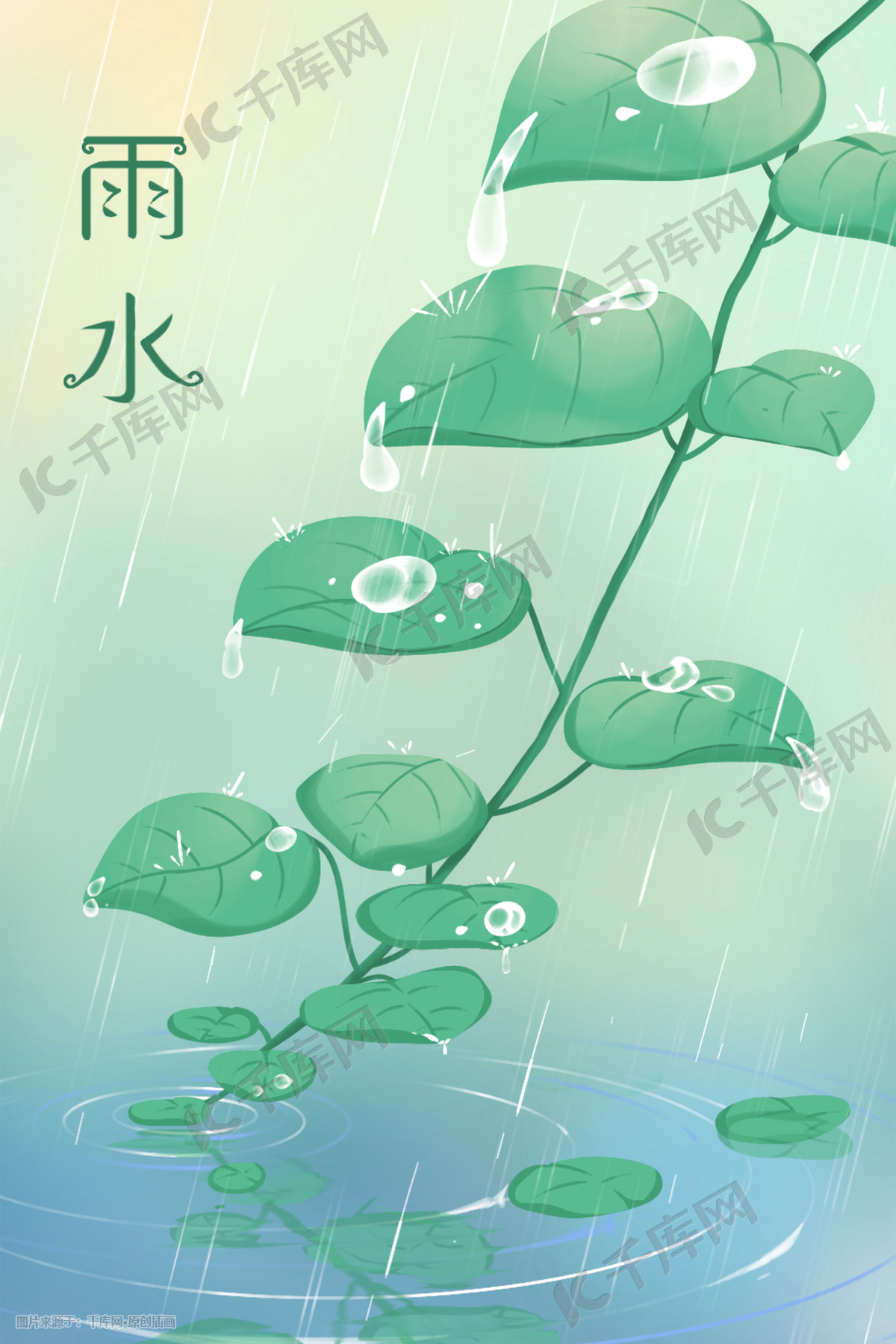 雨水节气唯美卡通绿色24节气春季春天
