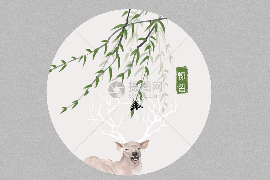 二十四节气立春春天的柳叶插画图片