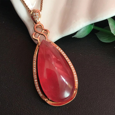 亲宝水晶 天然红纹石吊坠女款项链坠 冰种